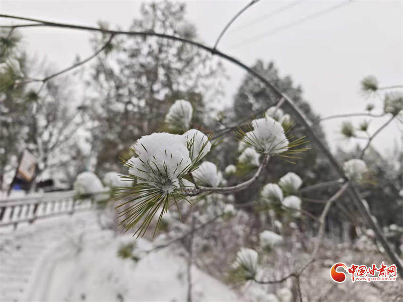 一场温润春雪悄然覆盖甘谷县天门山景区