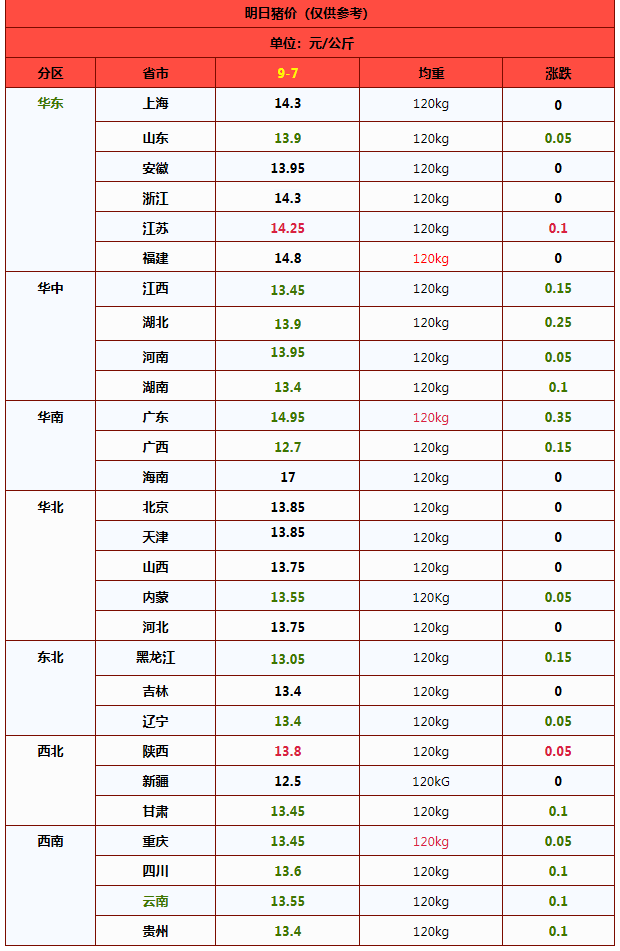 据机构数据分析,受屠宰场调价,预计,9月7日,外三元瘦肉型标猪价格出栏均价在13.82元/公斤,后市关注集团猪企出栏节奏的变化以及屠宰场开工率的变化!