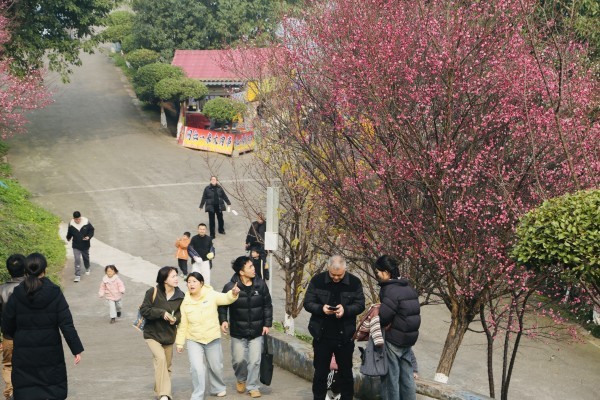 景区标志性的“索道环线”成为最受欢迎的体验项目之一。许多游客选择乘坐索道,在缓慢移动的车厢里悠闲地体验“高空晒太阳”的乐趣。位于景区核心地带的迎新“赶年集”集市更是人头攒动。上百个摊位依次排开,琳琅满目的商品吸引着游客品尝美味。